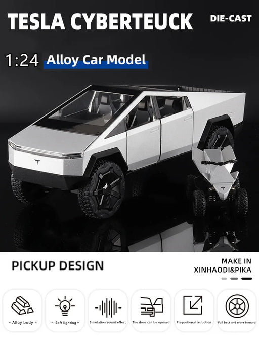 1:24 Tesla Cyberpunk Pickup Truck Model Alloy Simulation Sound And Light Pull Back Off-Road Vehicle Boys Collection Decoration